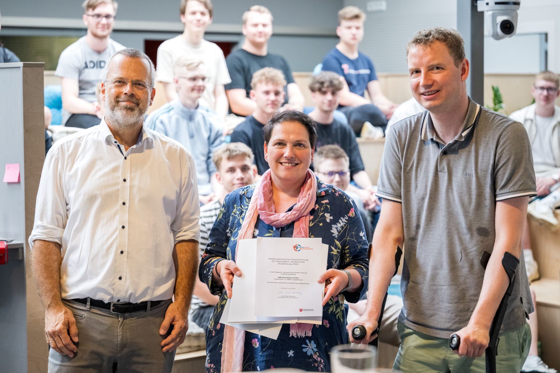 Cloppenburg, 15. August 2024 – AMCON Software wurde vom Niedersächsischen Kultusministerium mit der „Niedersächsischen Auszeichnung für besonders verlässliche Ausbildung 2024“ geehrt. In der Kategorie „Industrie und Handel“ würdigt das Land damit das kontinuierliche Engagement des Cloppenburger Softwareunternehmens für eine qualitativ hochwertige und nachhaltige Ausbildungsarbeit.